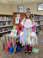 Life-Size Candy Land: Life-Size Candy Land was a regular winter program pre-Covid, and we decided to get it out of mothballs for Level Up at Your Library. We used laminated sheets of colored construction paper for the squares (with special location and action squares that we made in Canva), taped down to our carpet with clear packing tape. Students from our local high school's drama department played the characters for our opening event and we wrote a short skit for them to introduce the game. We decided just to have a small bag of candy for each participant at the end (given out at the Candy Castle by King Candy) rather than have each character hand out candy, since we actually played the game (i.e. we had 5 numbered spinners for 5 players to be on the game board at a time.) and I thought it might be awkward for participants to juggle candy and the spinner. However, this meant that the characters had less to do, though I encouraged them to improv/interact, and I basically just called out numbers (for each spinner to take a turn) throughout the event. In our holiday version, it was more of a cakewalk, where each player spun a number (or pulled a colored ball) as they entered the game, and then we just had everyone move to the same color in lock-step (cakewalk fashion). I guess there are pros and cons for each method. We planned to keep the game set-up without characters for a week following our initial event and ended up keeping it up a second week because it was so popular, with kids returning to play several times. We had about 50 children attend the opening event.