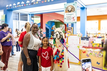 Llamas and alpacas from Redbird Willow Farm in Anniston, AL visited the Gadsden Public Library on June 20th. Children and adults alike admired the animals, and everyone had a chance to pet them and take their picture with an animal after Michele Hornsby read a story she wrote to the crowd. Michele's story, Just-in Time to Be Kind, is about her son who now lives in Heaven. The story reminds children to always be kind and that kindness is their superpower.