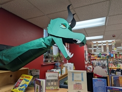 Our Youth Services staff at the Downtown Library had a lot of fun with the Level Up at Your Library theme. Using paper and cardboard, staff built Minecraft blocks, a fearsome dragon, and created a video game scavenger hunt.